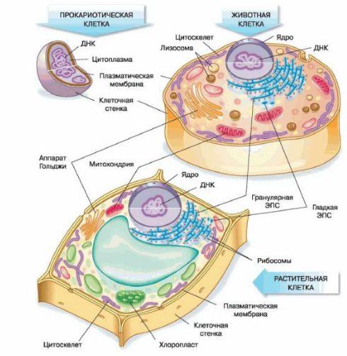 | Митохондрии | Энергетическая станция клетки | Есть | Есть | Есть | Нет |