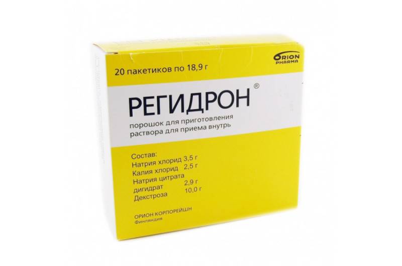 При лечении обезвоживания врачи нередко делают выбор в пользу лекарства Регидрон. Для приготовления раствора необходимо развести 1 пакетик средства в одном литре воды, принимать каждые два — три часа по 200-250 мл.