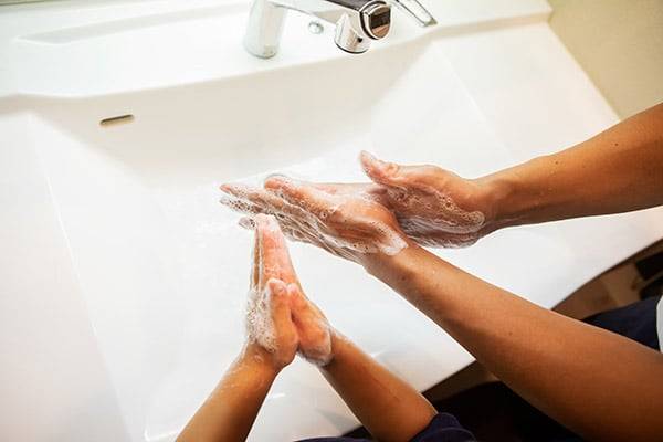 - Мойте руки горячей водой с мылом, особенно перед приготовлением пищи, до еды, после возвращения с улицы или посещения туалета.