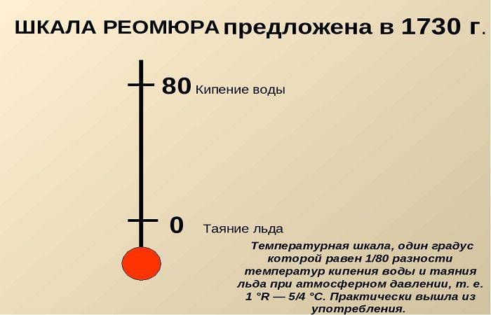 Интересный факт. Со временем шкала Реомюра претерпевала определенные изменения. Теперь же равенство выглядит следующим образом: 100 градусов Цельсия равно 80 градусам по Реомюру. Таким образом, выходит, что 1 °С – это 0,8 °R (краткое обозначение Реомюра). А ведь изначально равенство должно было выглядеть несколько по-другому: 1 °R=0,925°С.
