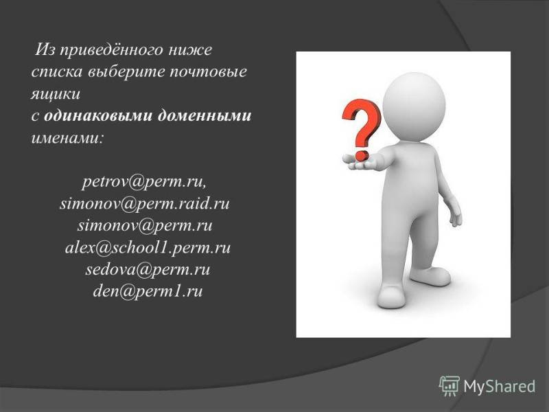 Из приведённого ниже списка выберите почтовые ящики с одинаковыми доменными именами: