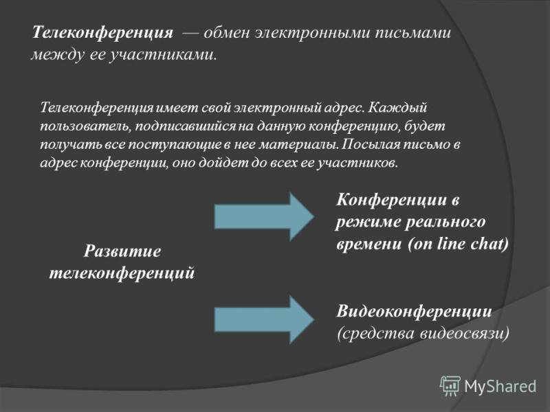Телеконференция и электронная почта представляют собой два разных инструмента коммуникации, которые позволяют людям обмениваться информацией в режиме онлайн