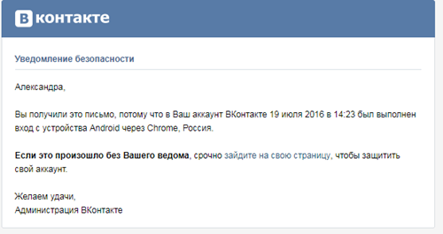 Мы настоятельно рекомендуем вам не выключить данные оповещения они помогут вам защитить вашу страничку от злоумышленников.