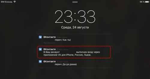 Данное сообщение говорит о том, что кто-то зашел на вашу страницу через мобильное приложение или браузер. Если при этом вы не помните, что заходили с другого устройства на свою страницу, значит, это сделал кто-то другой. Этому не нужно удивляться, так как сегодня существует множество способов, как завладеть чужой страницей Вконтакте.