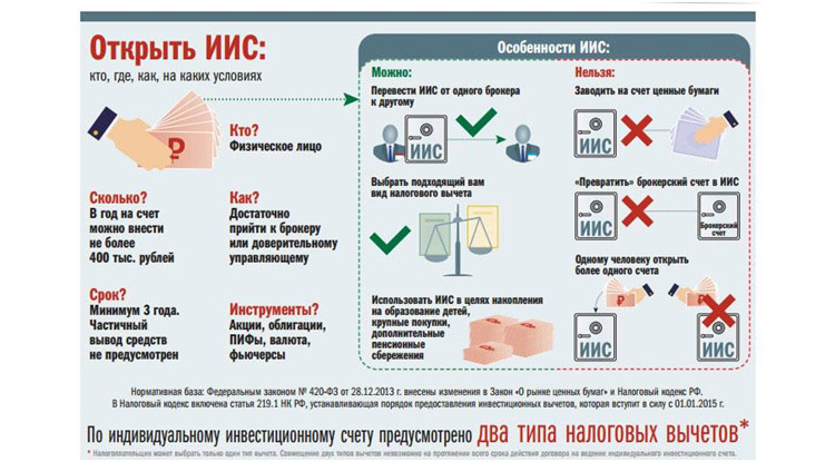Индивидуальные инвестиционные счета – это особый тип счетов, посредством которых можно приобретать ценные бумаги, который предоставляет своим владельцам право на получение налогового вычета либо на льготное налогообложение доходов, полученных в процессе инвестирования. Открытием счета ИИС занимаются управляющие компании и брокеры. У данного способа инвестирования есть определенные особенности и ряд ограничений: