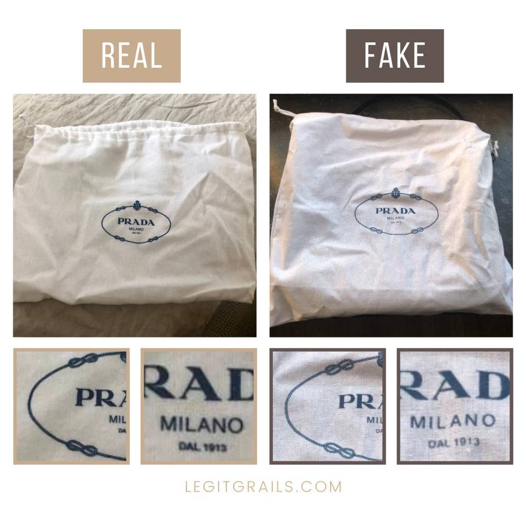 The material of the authentic dust-bag is higher-quality than the replica one, which seems to have a worn-out look.