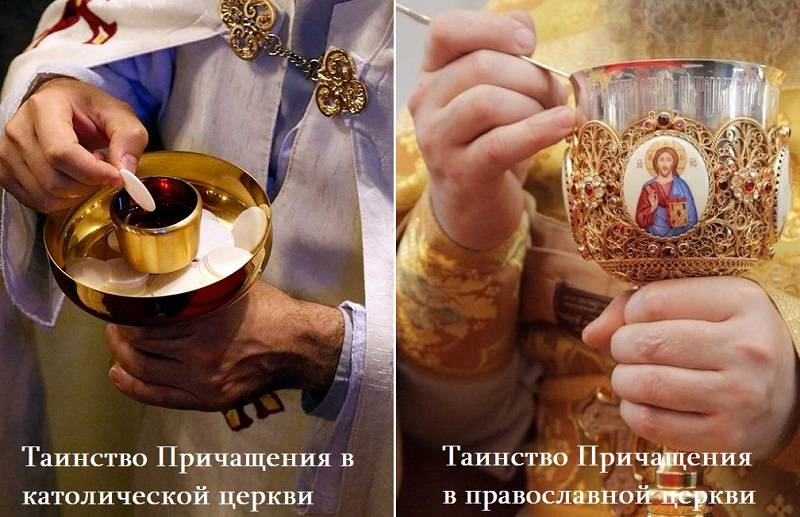 9) В Православной Церкви главенствует один обряд. В Католической Церкви этот обряд, возникший в Византии, называется византийским и является одним из нескольких. В России более известен римский (латинский) обряд Католической Церкви. Поэтому часто за различия между РПЦ и Католической Церковью ошибочно принимают различия между литургической практикой и церковной дисциплиной византийского и римского обрядов Католической Церкви. Но если православная литургия сильно отличается от мессы римского обряда, то на католическую литургию византийского обряда очень похожа. И наличие в РПЦ женатых священников тоже отличием не является, так как они есть и в византийском обряде Католической Церкви;