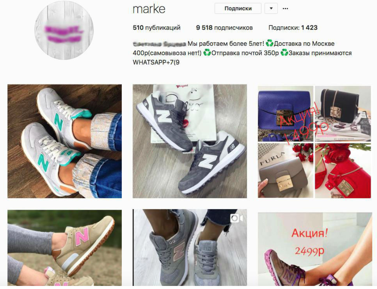. Также от действий злоумышленников страдают часовые бренды, производители парфюмерии, косметики; встречаются и аккаунты, продающие поддельные гаджеты популярных марок. В Instagram активно продают подделки под брендами не только зарубежных, но и российских компаний.