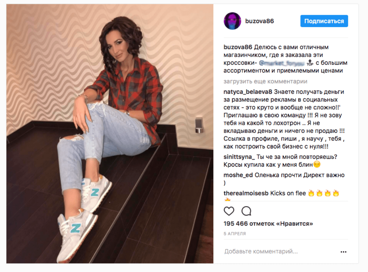 Ольга Бузова рекламирует аккаунт продавцов поддельных кроссовок