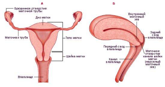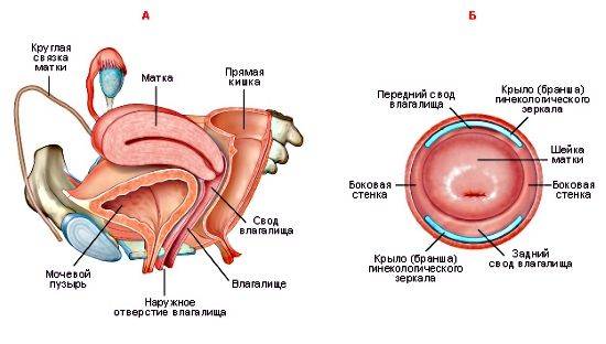 Влагалище (вагина) – мышечная трубка, которая простирается от входа, спрятанного за половыми губами, до шеечного отдела матки. Та часть влагалища, которая окружает маточную шейку, образует собой свод, условно состоящий из четырех секторов: заднего, переднего, а также левого бокового и правого.