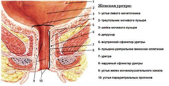 У женщин мочевыводящий проток соединяет внутреннее отверстие мочевого пузыря с внешним уретральным рядом с наружными половыми органами. Проходит он параллельно влагалищу. Вблизи внешнего уретрального отверстия в канал впадают два парауретральных протока.
