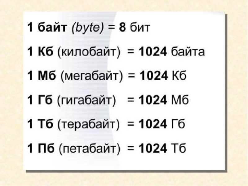 Пользователей интернета интересует работа с файлами, их размер принято измерять в байтах, килобайтах, мегабайтах и гигабайтах, равных: