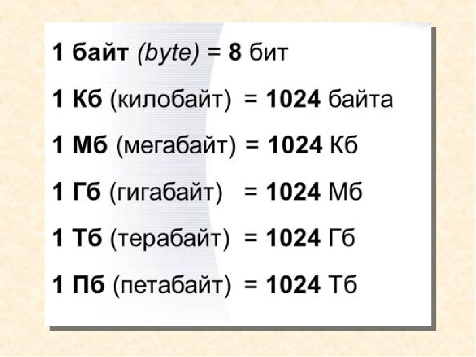 Вся информация хранится в оперативной памяти, кэше устройств или записывается на диск. Для того чтобы вы поняли, чем отличается гигабайт от мегабайта (Мб и Гб) мы приведем несколько простых примеров.