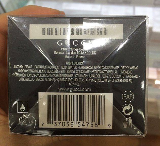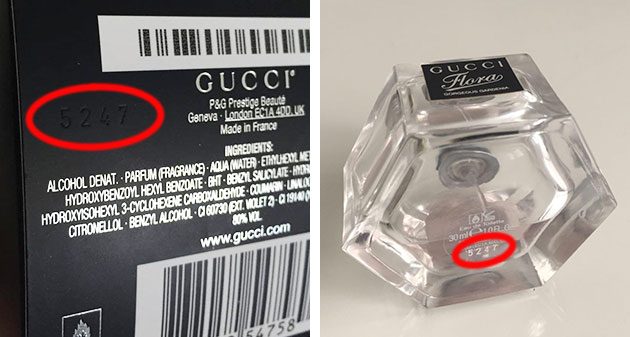 На дне коробки оригинальных духов наносится уникальный код, который должен совпадать с кодом, нанесенным на дно бутылки.