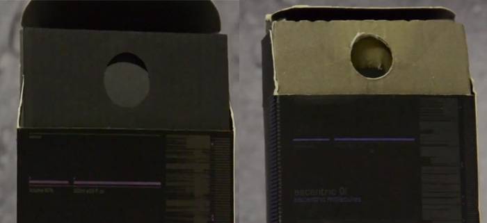 - Потрясите коробку, в оригинальной коробке не должно быть ощущений, что внутри что-то болтается. Флакон, внутри упаковки, надежно закреплен.
