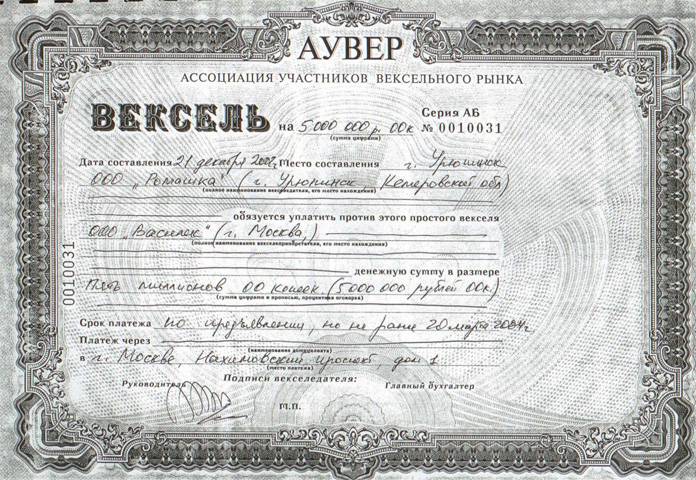 Вексель представляет собой долговое обязательство, согласно которому владелец бумаги обязуется возвратить оговоренную сумму средств в указанные сроки. Вексель нередко используется не только в качестве кредита, но и в качестве средства расчета за товары или услуги. Довольно многие предприятия используют вексель в качестве платежного документа