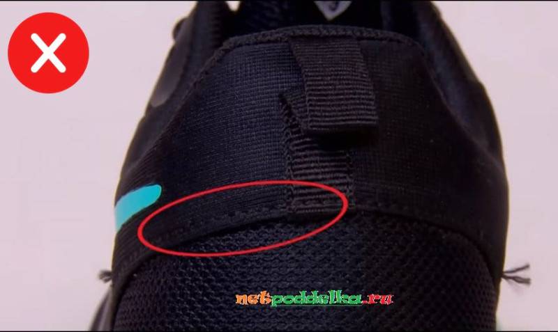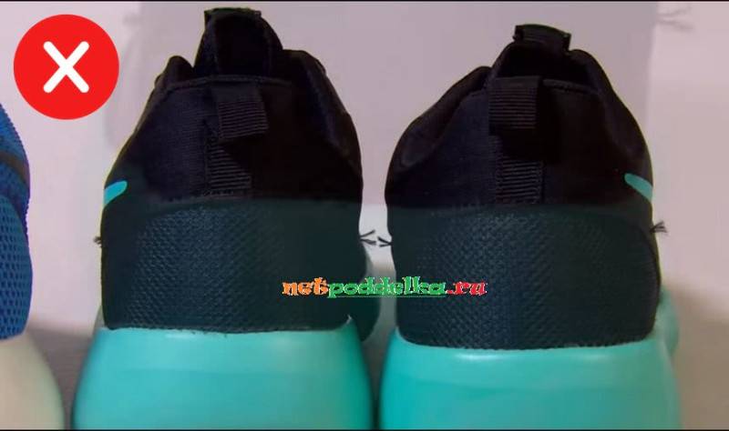 Осмотр пятки − хороший способ как отличить оригинал кроссовок. Мошенники не особо следят за качеством изготовления задней части обуви, так как она не сразу бросается в глаза. Возможно множество неточностей при создании копии. Пятка у реплики редко держит форму.