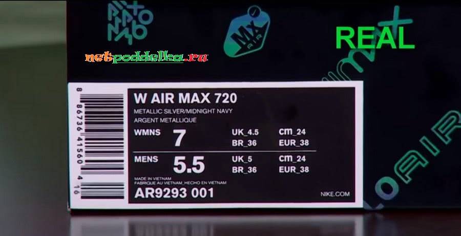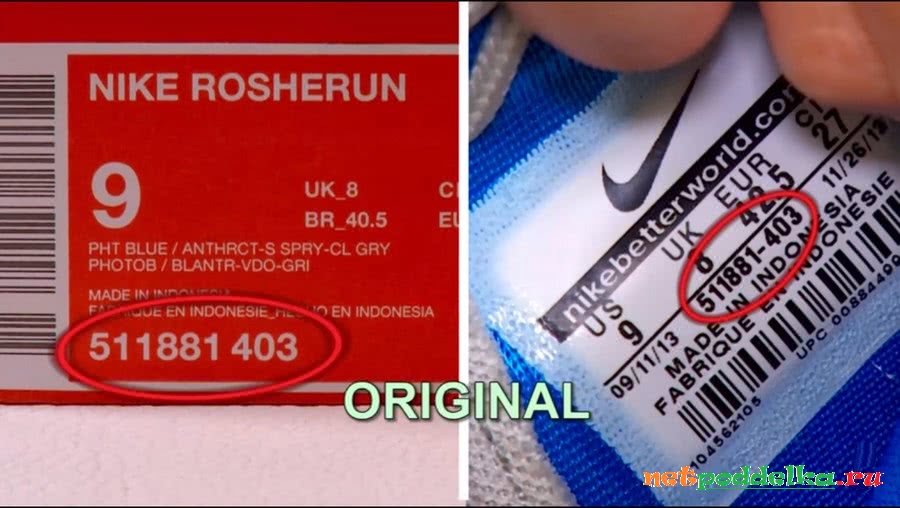 Чтобы отличить оригинал кроссовок от их копий, достаточно провести сверку идентификационного номера у нужной пары. На язычке обуви (изнутри) обычно прикреплен товарный артикул, на нем находится информация — 12-значный номер. Он помечен ниже размерного ряда. Обычно бумажный артикул крепят к левому кроссовку. На нем на нескольких языках описаны составляющие компоненты.