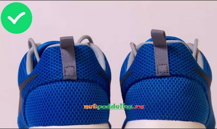 Осмотр пятки − хороший способ как отличить оригинал кроссовок. Мошенники не особо следят за качеством изготовления задней части обуви, так как она не сразу бросается в глаза. Возможно множество неточностей при создании копии. Пятка у реплики редко держит форму.