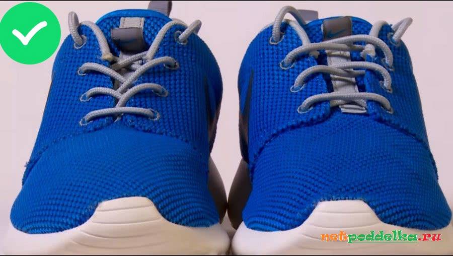 Кроссовки хорошо держатся. Шнуровые люверсы производители изготавливают трапециевидной формы. У контрафактной продукции они круглого вида. Если удается рассмотреть такую тонкость, то можно избежать покупки копии.