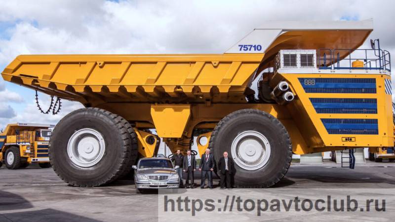 Это самый большой грузовик в мире. Сделанный в Беларуси, этот огромный грузовик классифицируется как «самосвал » и относится к категории «ультра-класс» для данного типа транспортных средств. Проще говоря, это внедорожный самосвал с жесткой рамой, специально созданный для высокопроизводительных горных работ и тяжелых строительных площадок.