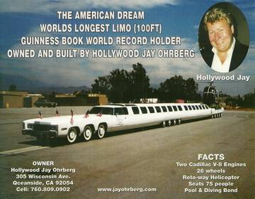 Лимузин, построенный в начале 1980-х Джеем Орбергом, известным кастомайзером в Голливуде, специально для съёмок в фильмах. Занимает свое место в рейтинге самых больших автомобилей в мире благодаря 100-футовой длине (30,5 м).