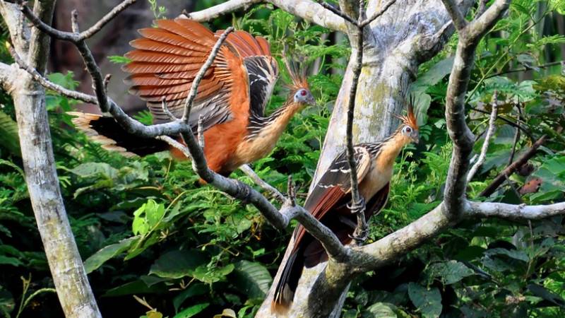 Количество видов птиц превышает 1500. Здесь водятся много видов попугаев, в том числе и всем известные ара, колибри, и многие другие. Влажные тропические леса в любой точке планеты являются удобным домом для птиц, Амазонская низменность не является исключением.
