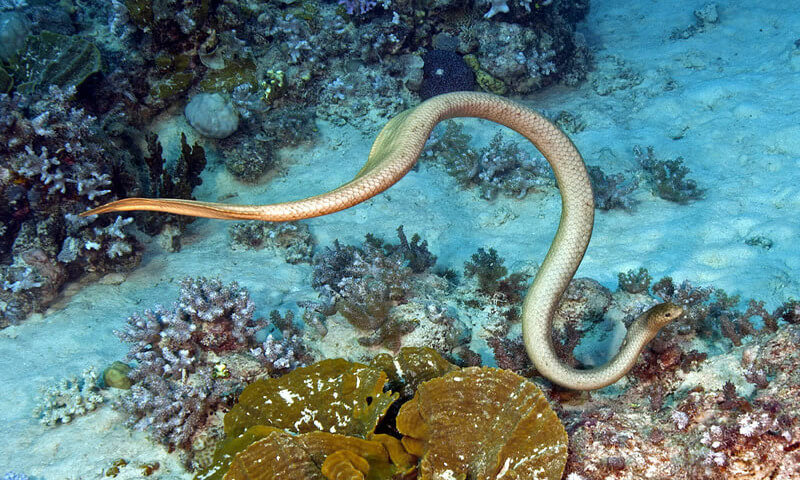К счастью, белчера – очень миролюбивая рептилия. Дайверы могут спокойно проплывать мимо нее, и она не нападет, рыбаки аккуратно достают из сетей запутавшихся змей, и они их не трогают. Полосатая змея кусает человека только в том случае, если ей сделать больно или раздразнить.
