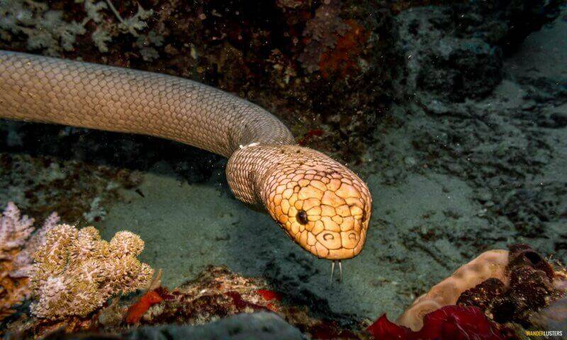 Несмотря на статистику – эта рептилия имеет довольно мирный характер. Она старается избежать контакта с человеком и, увидев дайверов, стремится скрыться в глубине