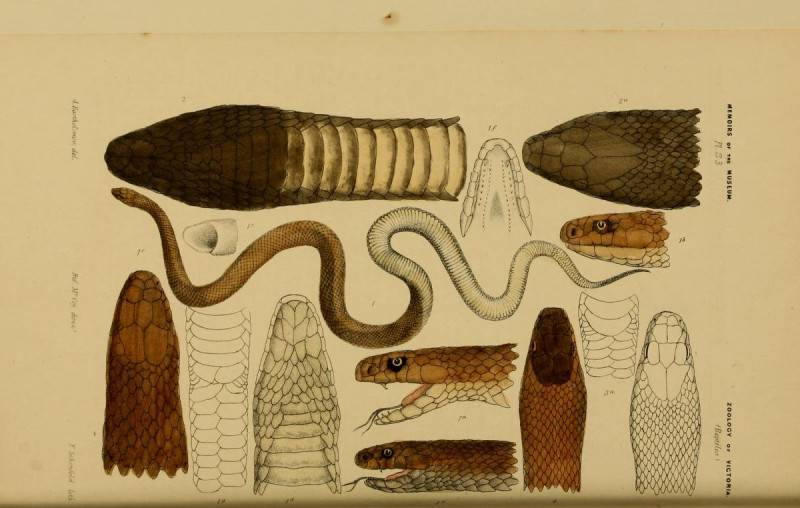 В то время исследователь изучил два образца рептилий, которых обнаружили в австралийском штате Виктория. Маккой отнес пресмыкающихся к виду Коричневых змей и дал им название «Мелкочешуйчатая коричневая змея».