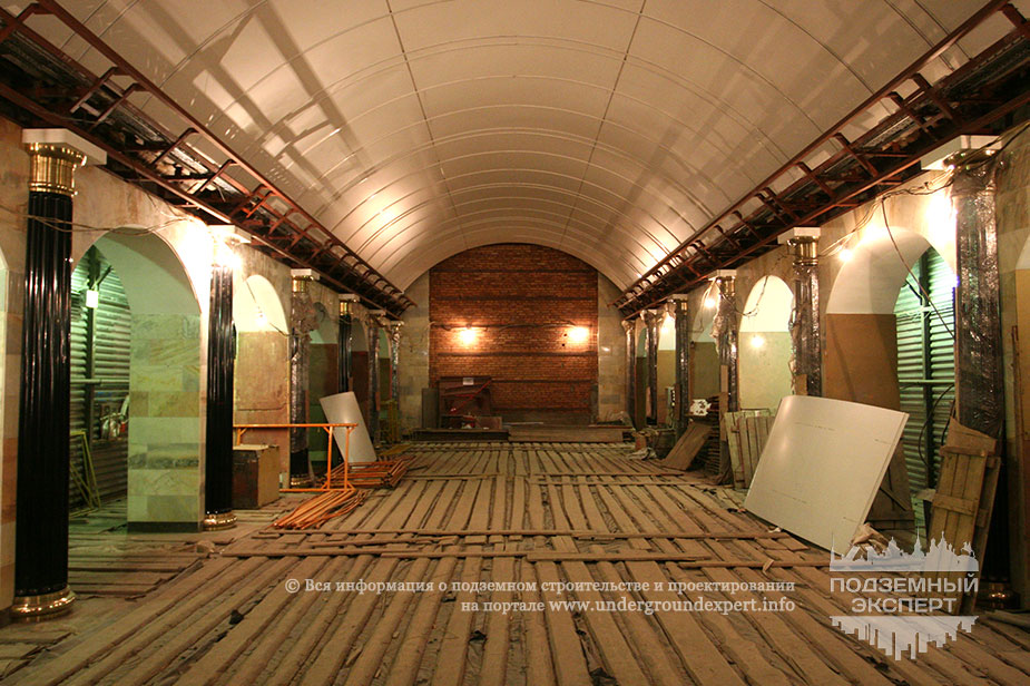 Созданием интерьера занимался известный скульптор Церетели. В качестве отделочных материалов поверхностей использовался мрамор черного и серого цвета, гранит. В общем рейтинге самых глубоких платформ в мире занимает 4-е место.