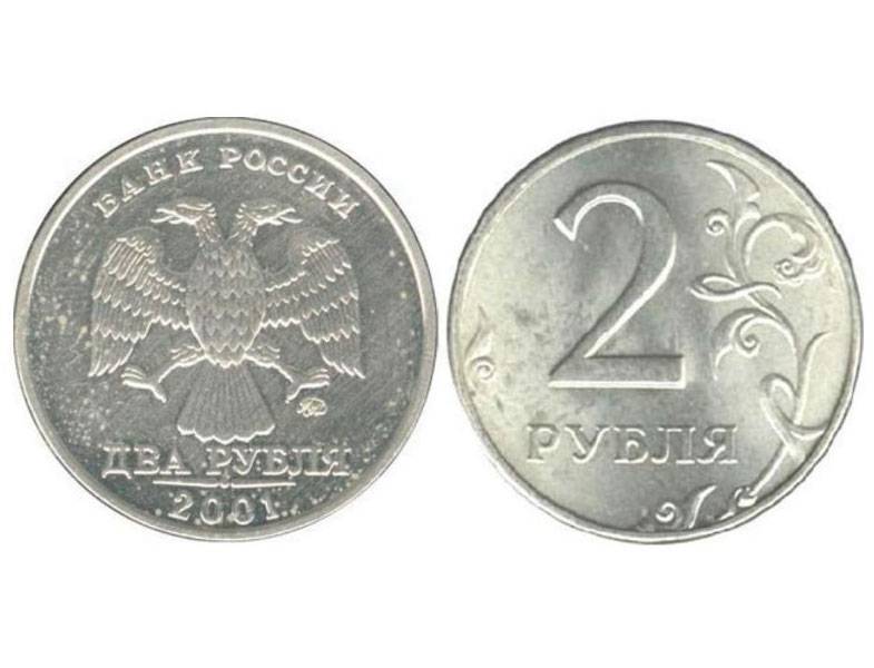 Уникальными являются и 2 рубля 2001 года из медно-никелевого сплава, выпущенные на Московском монетном дворе. Пример того, как должна выглядеть монета: