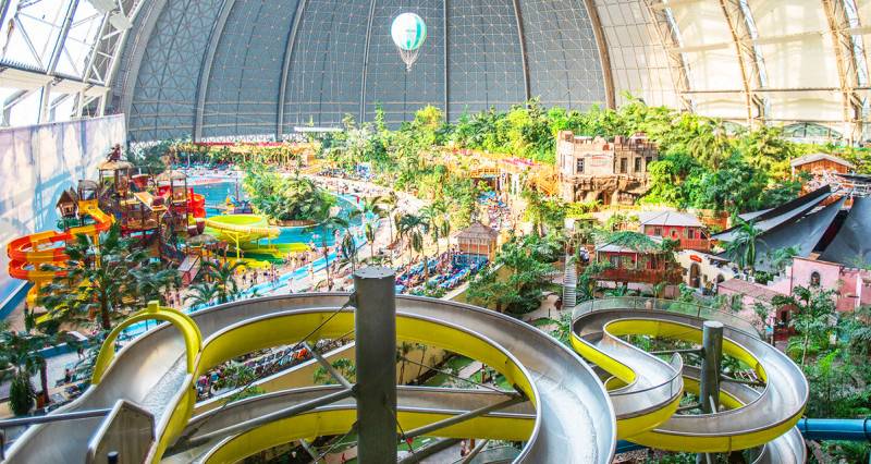 Немецкий аквапарк «Тропические острова» находится неподалеку от Берлина. Переоборудованный ангар для дирижаблей, построенный еще до начала Второй Мировой войны, превратился в один из самых популярных парков развлечений.