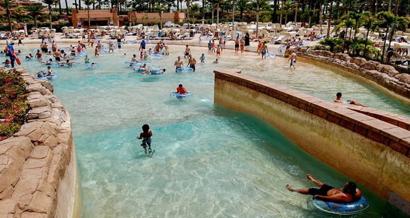 Аквапарк занял первое место в рейтинге «Лучший аквапарк» 2019 года. Парк построен на искусственном острове: пальме. Вид просто завораживает и дополняет аквапарк 700-метровым пляжем с белым песком.
