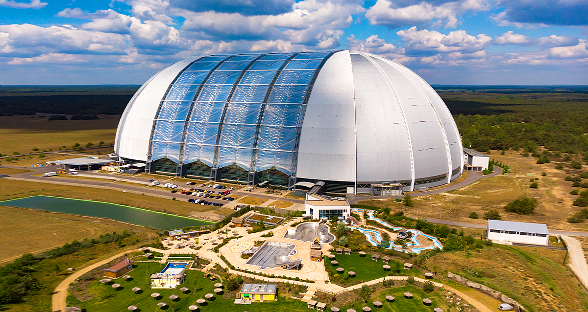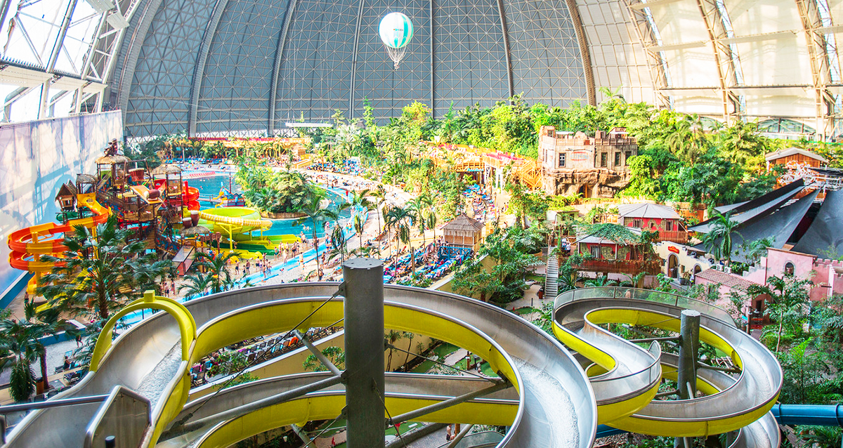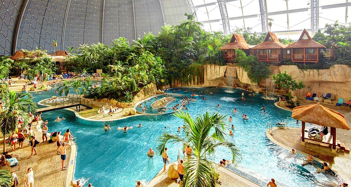 Немецкий аквапарк «Тропические острова» находится неподалеку от Берлина. Переоборудованный ангар для дирижаблей, построенный еще до начала Второй Мировой войны, превратился в один из самых популярных парков развлечений.