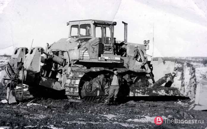 Еще один представитель России, вернее СССР – Promtractor T-50.01 Bulldozer. Агрегат появился на свет тоже в конце 80-ых. В нем использовался американский двигатель Cummins. Двигатель имел мощность 552 кВт или 751 л.с. Вес бульдозера – 93,5 тонны.