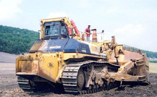 Komatsu D375A выпускался с 1993 по 2009 годы. Экономичный двигатель Komatsu SA6D170E мощностью 535 лошадиных сил легко обслуживается, имеет встроенную систему охлаждения, защиту гидравлики, оснащен модульным устройством силовой передачи.