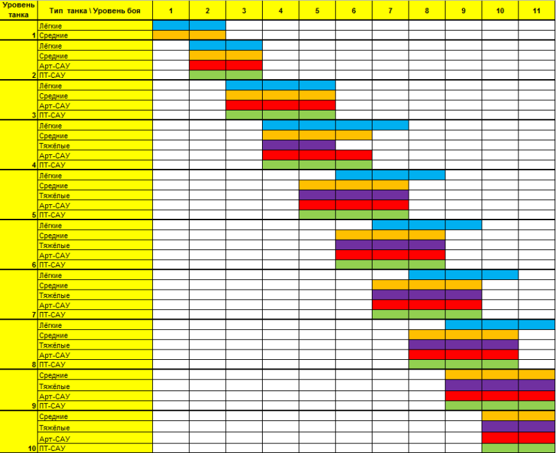 По данной таблице можно определить с каким танком вы будете воевать исходя и з того, какой танк у вас. Таблица приведена ниже.
