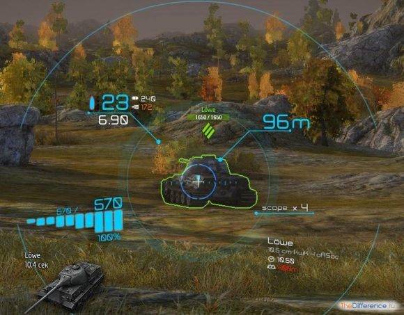 К этой категории прицелов можно отнести прицелы а-ля Ghost Recon или Octagon. Все футуристические прицелы выводят на экран большое количество информации: калькулятор брони, показатели танка противника, время полета снаряда и дальность до цели, количество снарядов БК, их типы и многое другое. Но у них есть весомый минус – они занимают слишком много места на дисплее и отвлекают игрока в бою.