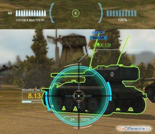 великолепное сведение;индикатор жизни (в процентах);отсутствует затемнение в снайперском режиме;таймер перезарядки снарядов.
