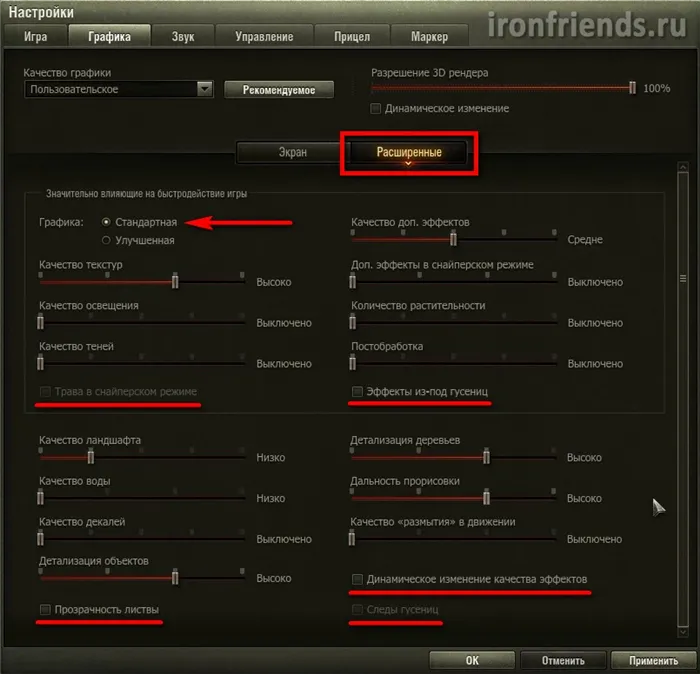 Также рекомендуется отключить траву и эффекты в снайперском режиме (очень раздражает), прозрачность листьев (делает игру еще более четкой и быстрой), эффекты тропинок и под тропинками (никогда не видно). ‘Качество дополнительных результатов’ не должно быть выше среднего, отключаться или вмешиваться (например, от артиллерии до ракет, взрывающихся поблизости). Убедитесь, что «Динамическое изменение качества эффекта» лучше удалить. В игре нет необходимости в наведении графики.