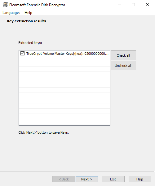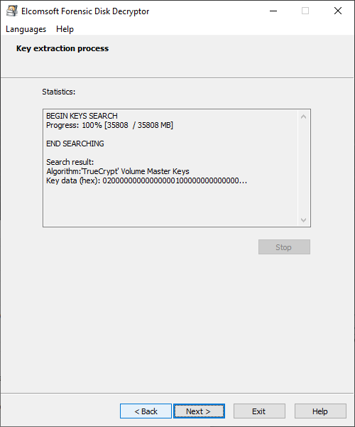 Соответственно, при включении шифрования ключей в оперативной памяти VeraCrypt отключает функции быстрого запуска и гибернации в Windows. Если же пользователь не включил шифрование ключей памяти (а знает о существовании этой опции очень небольшое количество пользователей), то ключи VeraCrypt можно извлечь из файла гибернации. В случае отключения компьютера в режиме «быстрого запуска» из созданного небольшого файла гибернации можно попробовать извлечь ключи от криптоконтейнеров VeraCrypt (но не от тех дисков, в которых используется полнодисковое шифрование) при помощи Elcomsoft Forensic Disk Decryptor.
