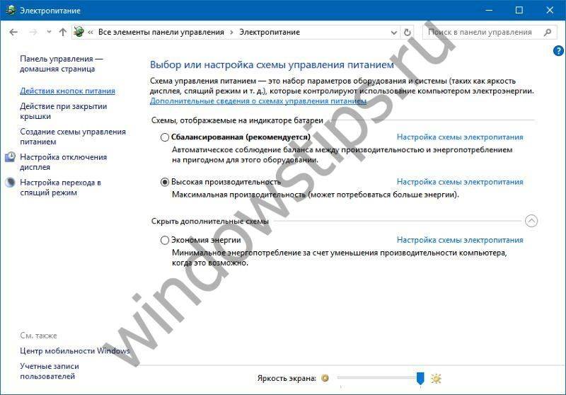 В Windows можно настроить параметры электропитания, т.е. задать, когда компьютер перейдетв спящий режим, а когда выполнит гибернацию. На ноутбуках также задаются действия при закрытии крышки при питании от сети и от батареи.