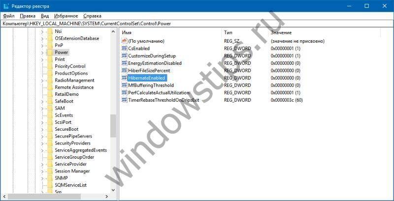 Переходим к параметру «HibernateEnabled» и так же меняем значение на «0», «ОК». Закрываем редактор реестра.