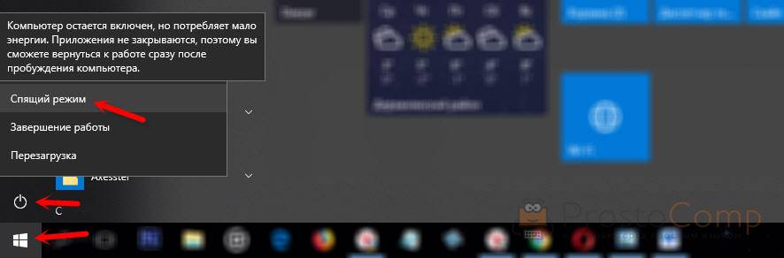 Теперь соответствующая вкладка должна появиться в меню «Пуск» в разделе «Выключить».