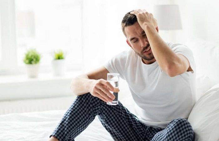 Даже качественный спирт способен вызывать у человека похмелье. Это состояние характеризуется тем, что алкоголь прекращает активное распространение по организму и начинает постепенно перерабатываться. Этот процесс провоцирует выраженную головную боль, повышенную потливость, головокружения, тошноту.