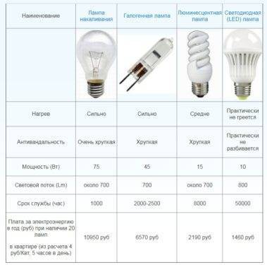 Из таблицы видно, что даже без учета долговечности ламп светодиодная по сравнению с лампой накаливания занимает явно выигрышное положение.