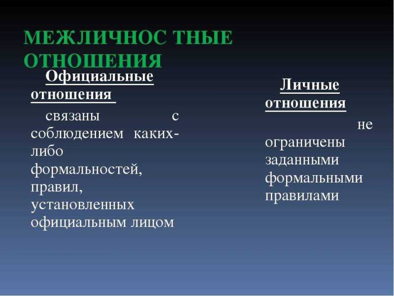 Субординация – это неотъемлемая часть любых здоровых отношений между людьми. Тем не менее, внутри разных групп общение может строиться по разным схемам. Две наиболее яркие из них определяют характер личных и деловых отношений. Но, чтобы понять, чем различаются деловые и личные отношения, сначала необходимо немного разобраться в природе межличностных отношений как таковых.
