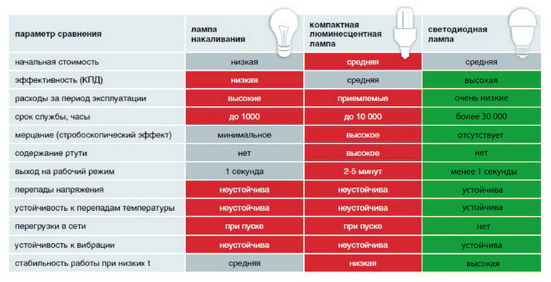 Кратко распишем все эти нюансы, после чего рассчитаем реальную эффективность применения всех видов ламп, а затем подведем итоги сравнения в максимально наглядном и объективном формате.