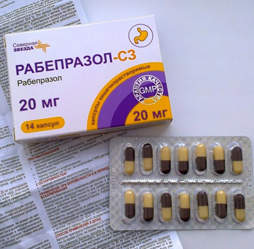 Содержит вещество рабепразол. Выпускается в таблетках и капсулах, покрытых кишечнорастворимой оболочкой.